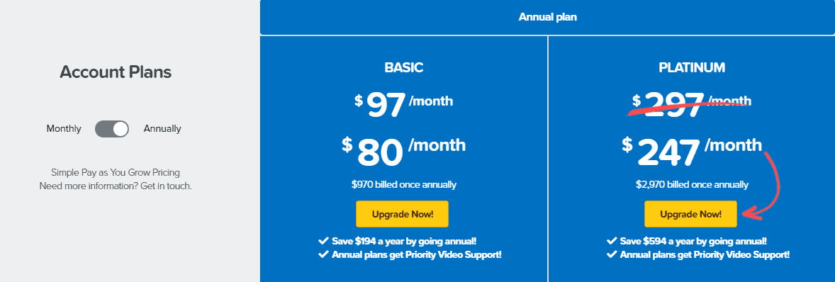 Let’s be honest, no one likes to pay monthly fees. Clickfunnels recognized that and came up with the annual plan.